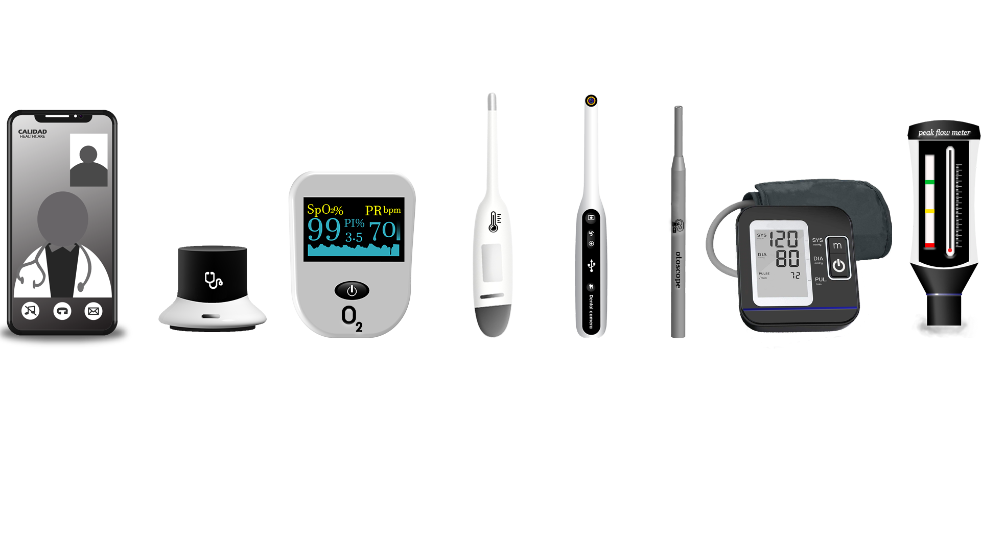 The Calidad Telehealth kit includes a web & app platform plus various innovative devices & adaptors which sends patients medical data on doctor's screen directly during live consultation making it a more accurate Telehealth visit